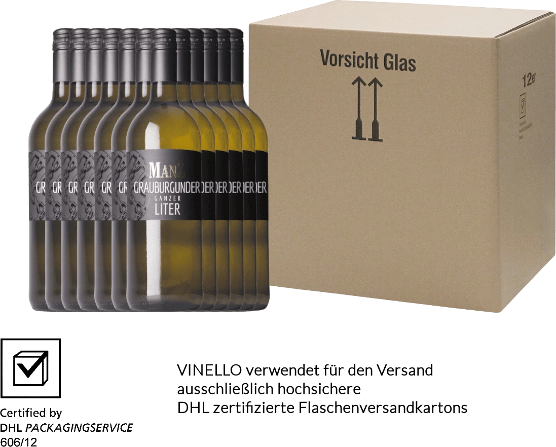 Im Glas offeriert der Grauburgunder Liter aus dem Hause Weingut Manz eine brillant schimmernde kupfergoldene Farbe. Dieser sortenreine deutsche Wein schmeichelt im Glas herrlich ausdrucksstarke Noten von Äpfeln, Ananas, Physalis und Papayas. Hinzu gesellen sich Anklänge von sonnenwarmes Gestein und Waldboden.