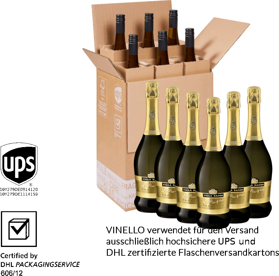 Genießen Sie diesen Bestseller von Villa Sandi jetzt zum Vorteilspreis im 12er Paket il Fresco Prosecco Spumante Brut.