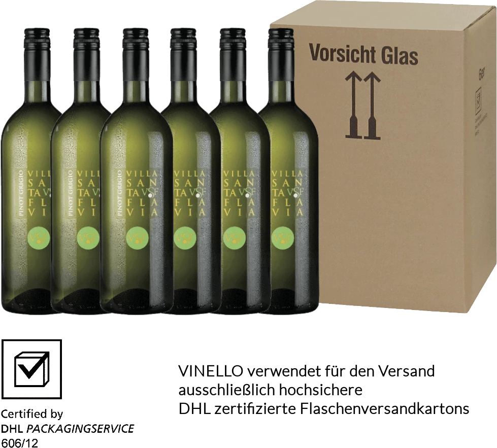 Der elegante 6er Paket aus Italien ist ein reinsortiger Wein, hergestellt aus der Rebsorte Pinot Grigio. Nach der Handlese gelangen die Weintrauben zügig ins Presshaus. Hier werden sie selektiert und behutsam aufgebrochen. Anschließend erfolgt die Gärung im Edelstahltank bei kontrollierten Temperaturen. Der Vinifikation schließt sich eine Reifung für einige Monate auf der Feinhefe an, bevor der Wein schließlich auf Flaschen gezogen wird.