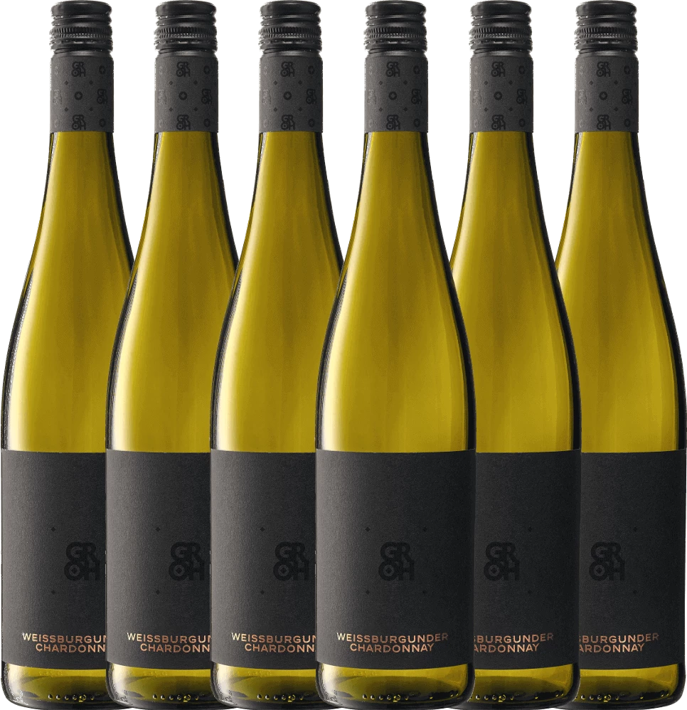 Der Grohsartig Weißburgunder Chardonnay von Groh aus dem deutschen Weinbaugebiet Rheinhessen ist ein herrlich schmelzige und lebhafte Weißwein-Cuvée. Die Nase erfreut sich an frischen Aromen, wie Zitrus, gelbem Steinobst und blumige Anklänge. Am Gaumen wundervoll mineralisch mit gut eingebundener Säure.
