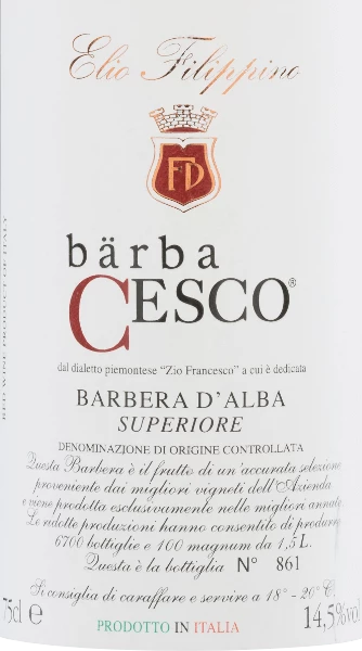 Der Bärba Cesco Barbera d’Alba Superiore von Elio Filippino ist ein wundervoller, reinsortiger Rotwein aus dem Piemont.