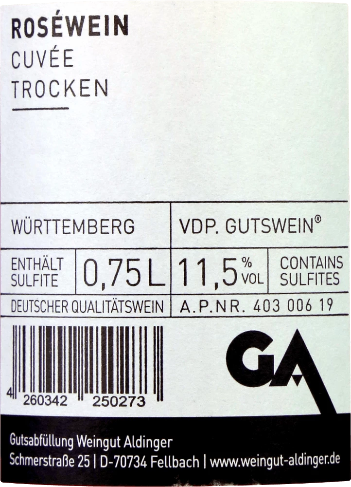 Am Gaumen verzaubert der Aldinger Bentz Rosé mit knackiger Säure, feinem Schmelz und unerhörter Fruchtigkeit. Saftig und mit unbändiger Trinkfreudigkeit rauscht dieser württembergische Rosé in einen schönen, mittellangen Abgang.