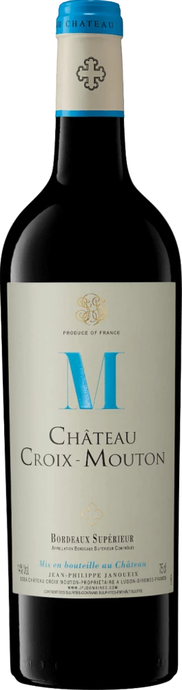 Grundlage für die erstklassige und wunderbar balancierte Cuvée Bordeaux Supèrieur von Château Croix Mouton sind Cabernet Sauvignon und Merlot Trauben. Im Bordeaux wachsen die Reben, die die Trauben für diesen Wein hervorbringen auf Böden aus Ton. Durch den ausgleichenden Einfluss des nahenFlussesreifen die Weintrauben langsamer und entwickeln mehr aromatische Komplexität. Der Bordeaux Supèrieur ist ein Alte Welt-Wein durch und durch, denn dieser Franzose atmet einen außergewöhnlichen europäischen Charme, der ganz klar den Erfolg von Weinen aus der Alten Welt unterstreicht. Wenn die perfekte physiologische Reife sichergestellt ist werden die Trauben für den Bordeaux Supèrieur ohne die Hilfe strapazierender und wenig selektiver Traubenvollernter ausschließlich händisch geerntet. Nach der Handlese gelangen die Trauben auf schnellstem Wege in die Kellerei. Hier werden sie sortiert und behutsam gemahlen. Es folgt die Gärung im Edelstahltank und kleinen Holz bei kontrollierten Temperaturen. Nach ihrem Ende wird der elegante Bordeaux Supèrieur noch für einige Monate in Fässern aus Eichenholz ausgebaut.