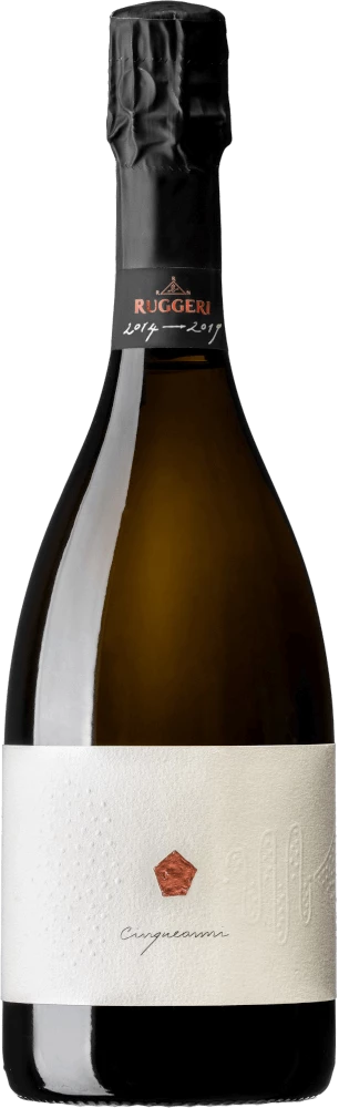 Grundlage für den eleganten Cinqueanni Extra Brut Valdobbiadene Prosecco Superiore aus Venetien sind Trauben aus der Rebsorte Glera. In Venetien wachsen die Reben, die die Trauben für diesen Wein hervorbringen auf Böden aus Kalkstein, Ton und Mergel. Der Cinqueanni Extra Brut Valdobbiadene Prosecco Superiore ist ein Alte Welt-Wein durch und durch, denn dieser Italiener versprüht einen außergewöhnlichen europäischen Charme, der ganz klar den Erfolg von Weinen aus der Alten Welt unterstreicht. Einen beachtlichen Einfluss auf die Reife des Lesegutes hat zudem die Tatsache, dass die Glera-Trauben unter dem Einfluss eines warmen Klimas gedeihen. Dies äußert sich unter anderem in besonders gut ausgereiften Trauben und eher hohem Alkoholgehalt im Wein. Im Anschluss an die Lese werden die Trauben umgehend ins Presshaus gebracht. Hier werden sie sortiert und behutsam gepresst. Nun folgt die Gärung der Grundweine. Nach der Zusammenstellung der Cuvée folgt der weitere Ausbau auf Basis der Methode Charmat. Anschließend reift der Ruggeri Cinqueanni Extra Brut Valdobbiadene Prosecco Superiore für 46 Monate in der Flasche.