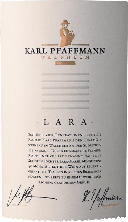 Die Trauben für diesen Rotwein aus Deutschland werden, wenn sie perfekt ausgereift sind, ausschließlich von Hand geerntet. Nach der Weinlese gelangen die Weintrauben umgehend in die Kellerei. Hier werden sie selektiert und behutsam aufgebrochen. Anschließend erfolgt die Gärung im Edelstahltank und kleinen Holz bei kontrollierten Temperaturen. Nach dem Ende der Gärung wird die Cuvée Lara noch für 24 Monate in Barriques aus Eichenholz ausgebaut.