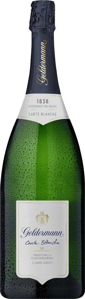 Der Geldermann Grand Carte Blanche 1,5 l Magnum aus der Feder von Geldermann aus Baden offenbart im Glas eine brillante, platingelbe Farbe. Die Perlage dieses Schaumwein leuchtet im Glas sehr feinperlig und ungemein beständig. Gibt man ihm im Weinglas durch Schwenken etwas Luft, so zeichnet sich dieser Schaumwein durch eine faszinierende Leichtigkeit aus, die ihn behende im Glas tanzen lässt. Der Nase präsentiert dieser Geldermann Schaumwein allerlei Mirabellen, Nashi-Birne, Äpfel, Pfirsiche und Quitten.