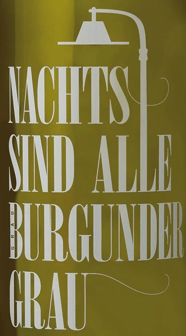 Dieser Wein legt den Fokus klar auf eine Rebsorte, und zwar auf Grauburgunder. Für diesen außergewöhnlich eleganten reinsortigen Wein von Markus Pfaffmann wurde nur bestes Traubenmaterial eingebracht. Nach der Lese gelangen die Trauben zügig ins Presshaus. Hier werden sie sortiert und behutsam gemahlen. Es folgt die Gärung im Edelstahltank bei kontrollierten Temperaturen. Nach dem Abschluss der Gärung kann sich der Grauburgunder NACHTS SIND ALLE BURGUNDER GRAU für einige Monate auf der Feinhefe weiter harmonisieren..