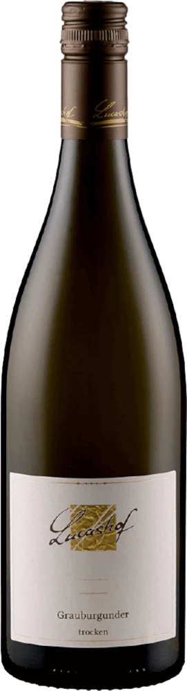 Der Grauburgunder vom Weingut Lucashof erstrahlt im Glas in einem satten Gelb mit goldenen Reflexen und entfaltet dabei sein fruchtbetontes Bouquet mit den Aromen von Äpfeln, Birnen und Zitrusfrüchten. Untermalt wird dieses zusätzlich durch einen Hauch von Pistazie.
