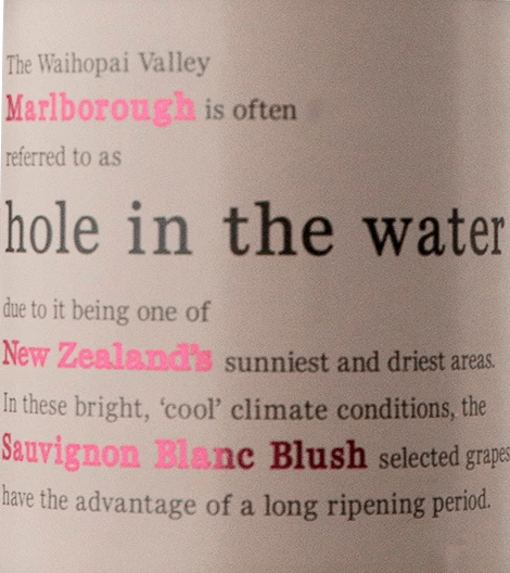 Grundlage für den balancierten Hole in the Water Blush aus Neuseeland Südinsel sind Trauben aus den Rebsorten Pinot Noir und Sauvignon Blanc. Nach der Weinlese gelangen die Trauben zügig ins Presshaus. Hier werden sie selektiert und behutsam aufgebrochen. Anschließend erfolgt die Gärung im Edelstahltank bei kontrollierten Temperaturen. Nach dem Abschluss der Gärung kann sich der Hole in the Water Blush für einige Monate auf der Feinhefe weiter harmonisieren.