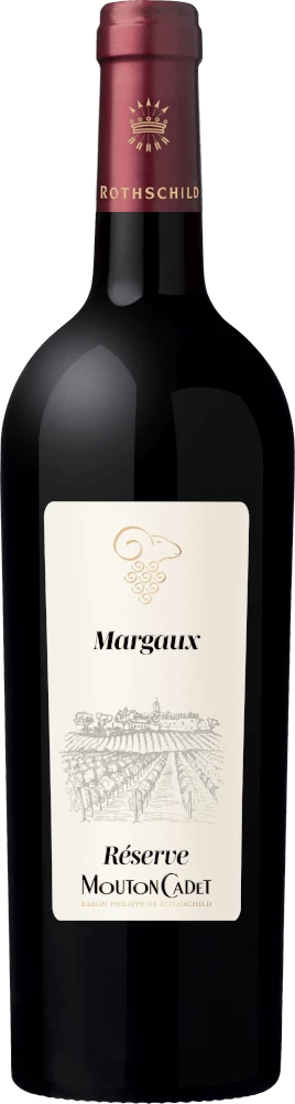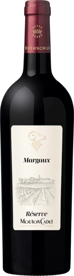 Dieser kraftvolle Rotwein aus Frankreich wird aus den Rebsorten Cabernet Sauvignon, Merlot und Petit Verdot vinifiziert. Die Trauben wachsen unter optimalen Bedingungen im Bordeaux. Die Reben graben hier ihre Wurzeln tief in Böden aus Lehm und Kalkstein. Ganz eindeutig wird der Mouton Cadet Réserve Margaux auch von klimatischen und stilistischen Faktoren Margaux bestimmt. Dieser Franzose kann im besten Sinne des Wortes als Wein der Alten Welt bezeichnet werden, der sich außerordentlich eindrucksvoll präsentiert. Nach der Weinlese gelangen die Trauben auf schnellstem Wege in die Kellerei. Hier werden sie selektiert und behutsam aufgebrochen. Anschließend erfolgt die Gärung im Edelstahltank und kleinen Holz bei kontrollierten Temperaturen. Nach ihrem Ende kann sich der Mouton Cadet Réserve Margaux für 18 Monate auf der Feinhefe weiter harmonisieren..