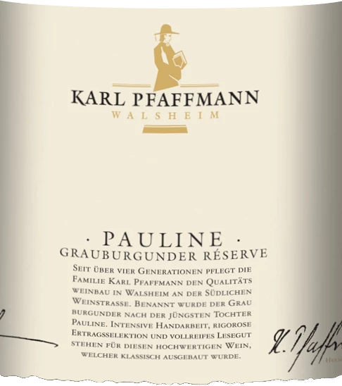 Dieser Weißwein legt den Fokus klar auf eine Rebsorte, und zwar auf Grauburgunder. Für diesen außergewöhnlich balancierten reinsortigen Wein von Karl Pfaffmann wurde nur bestes Lesegut geerntet. Der Pauline Grauburgunder Réserve ist ein Alte Welt-Wein im besten Sinne des Wortes, denn dieser Deutsche Wein atmet einen außergewöhnlichen europäischen Charme, der ganz klar den Erfolg von Weinen aus der Alten Welt unterstreicht. Die Weinbeeren für diesen Weißwein aus Deutschland werden, zum Zeitpunkt optimaler Reife, ausschließlich von Hand gelesen. Nach der Weinlese gelangen die Trauben umgehend ins Presshaus. Hier werden sie selektiert und behutsam gemahlen. Anschließend erfolgt die Gärung im großen Holz bei kontrollierten Temperaturen. Nach dem Abschluss der Gärung wird der Pauline Grauburgunder Réserve noch für einige Monate in Fässern aus französischer Eiche ausgebaut.