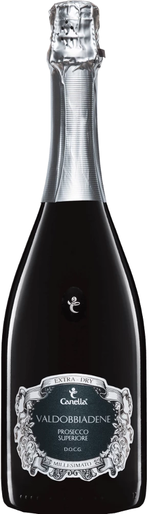 Der elegante Prosecco Superiore di Valdobbiadene Spumante Millesimato extra dry aus Italien ist ein reinsortiger Wein, gekeltert aus der Rebsorte Glera. In Venetien wachsen die Reben, die die Trauben für diesen Wein hervorbringen auf Böden aus Lehm und Kalkstein. Zum Zeitpunkt optimaler Reife werden die Trauben für den Prosecco Superiore di Valdobbiadene Spumante Millesimato extra dry ohne die Hilfe grober und wenig selektiver Maschinen ausschließlich von Hand gelesen. Nach der Weinlese werden die Weintrauben zügig in die Kellerei gebracht. Hier werden sie sortiert und behutsam gepresst. Anschließend erfolgt die Gärung der Grundweine. Nach der Komposition des finalen Prosecco Spumante folgt der weitere Ausbau auf Basis der Methode Charmat. Anschließend reift der Canella Prosecco Superiore di Valdobbiadene Spumante Millesimato extra dry für 3 Monate auf der Vollhefe.