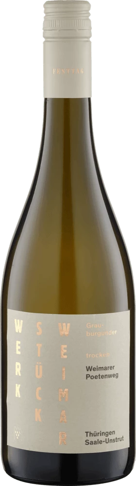 Dieser balancierte Weißwein aus Deutschland wird aus der Rebsorte Grauburgunder gekeltert. Nach der Handlese gelangen die Weintrauben zügig ins Presshaus. Hier werden sie selektiert und behutsam gemahlen. Es folgt die Gärung im kleinen Holz bei kontrollierten Temperaturen. Nach dem Ende der Gärung wird der elegante Weimarer Poetenweg Werkstück Grauburgunder Holzfass noch für einige Monate in Fässern aus Eichenholz ausgebaut.